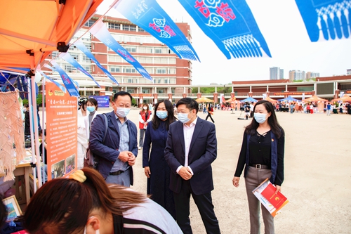 5月12日,由校团委主办、艺术学院团总支承办的学校“青春心向党,建功新时代”2022年职业教育活动周社团文化街活动在学校志愿广场举行。党委书记王金生,党委副书记、院长秦青松、党委副书记邢广陆、副院长张旭鹏亲临活动现场,校团委负责人、各二级学院负责人和团总支书记、校学生会、师生代表参加活动。