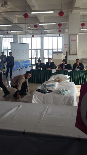 大赛历时2天,分为理论考试、方案设计、PPT答辩、中餐主题宴会设计、西餐主题宴会设计、中式铺床、英语考核七部分。大赛在考核选手从事酒店行业所必备的基本专业技能的基础上,侧重对综合职业能力、英语口语交际能力以及现代酒店服务创意的考量,是一场选手综合实力的大比拼,对高职酒店人才培养有着积极的导向作用。