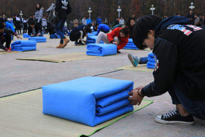 公寓中心主办“享青职生活,展青职风采”叠军被比赛,拉开公寓文化节教育活动大幕,100余名同学报名参加了比赛。师生评委根据被子外观平整度、棱角、内部平整度等标准进行评定,评分过程中同学们带来的精彩军歌和舞蹈表演给紧张的比赛带来了轻松和愉悦,最终85名同学分获比赛的一、二、三等奖。活动强化了前期新生军训的良好效果,又动员学生以实际行动全面参与公寓文化节。