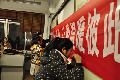 主题班会上,同学们分享了感恩父母、感恩教师、感恩朋友、感恩社会的故事;辅导员张雪也从自身以及周围朋友的相关事例中阐述了自己的观点与想法,解答了同学对感恩的一些疑问,与大家分享了感恩带来的快乐和幸福;怀着对感恩的热情,同学们把写有感恩祝福的黄丝带佩戴在右手上,并进行了“感恩活动”的宣誓和签名活动;各组组长领取了“感恩教育”活动期间的任务,并表示将一定按时完成任务。