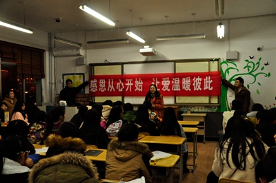 11月26日晚,艺术学院服装设计专业2015级2班在闻到楼举行“感恩教育主题班会暨感恩活动启动仪式”,拉开了艺术学院12月“感恩教育活动月”的序幕。
