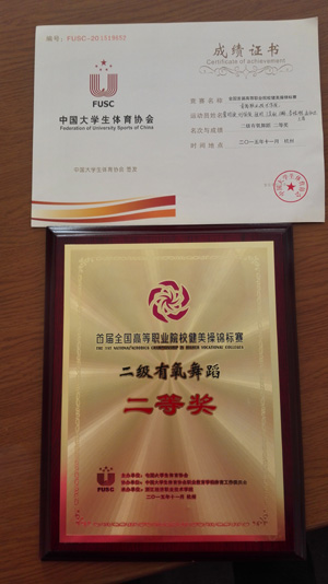 10月30日至11月2日,首届全国高等职业院校健美操锦标赛在杭州举行,此次比赛由中国大学生体育协会主办、职业教育学校体育工作委员会协办、浙江经济职业技术学院承办,我院公共教学部牟晓峰、陈焕娣两名老师带领校健美操队的8名同学参加了比赛,并获得了有氧舞蹈二级比赛二等奖的成绩。