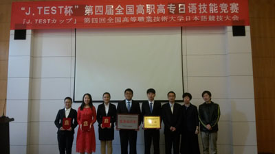 在10月17日上午落幕的“J.TEST杯”第四届全国高职高专日语技能竞赛中,我院代表队将各类最高奖项收入囊中,以团体成绩最高分的成绩获团体赛项一等奖,商务日语专业学生戴林坤、韩松林分别以第二名和第四名的成绩获个人赛项一等奖,我院以总分第一名的成绩获优秀组织奖,邵红、金彩侠、苗欣、张晓娜4位教师获优秀指导教师奖。自2011年首届全国高职高专技能竞赛举办以来,我院代表队连续四届囊获该项赛事全部赛项的桂冠。