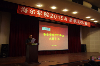 大会最后,海尔学院院长张明耀发言。他总结表彰了2015年海尔学院优秀教师、优秀学子的典型事迹,动员全体师生以更加崭新的面貌、更加饱满的精神状态投入到今后的工作和学习中。