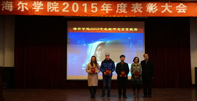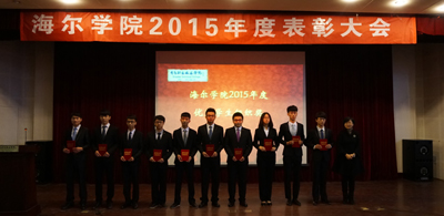 1月7日下午,海尔学院2015年度表彰大会在学院艺术厅举行。院长覃川,副院长张秋生、孔宪思出席会议,学生处、海尔学院相关负责人以及海尔学院全体教师和2014、2015级同学参加了此次活动。