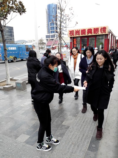 1月18日下午,针对近期岛城雾霾天气频繁出现的情况,旅游学院休闲服务与管理专业2014级的学生志愿者们来到开发区长江利群商厦附近,向市民发放防雾霾口罩,并倡议大家从自身做起,绿色出行,保护环境。志愿者们希望通过此次活动,让人们更加意识到环境保护的重要性,还岛城一片明媚蓝天。 此次实践活动受到了来往市民们的赞赏,收到了较好的宣传效果,也让同学们对环境保护的重要性有了更加深刻的体会。