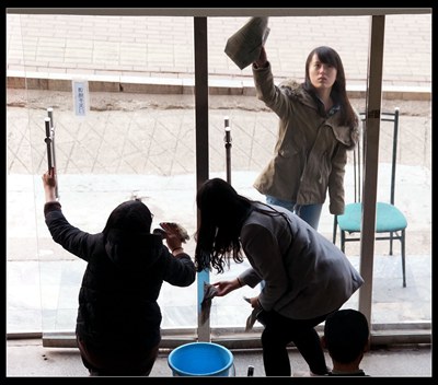 志愿者们进行卫生清扫