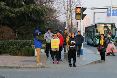 参与此次创城活动的志愿者包括院学生会学生干部、干事以及各二级学院、青年志愿者协会自发报名的同学。为保证志愿服务活动的顺利开展,团委负责老师在活动开始前对志愿者进行了培训,包括创城岗位分配、活动内容、活动安全等。当天下午,志愿者佩戴志愿者标识准时到达指定路口,开始了志愿服务活动。过程中,同学们积极为过路行人指引交通,劝阻闯红灯、不走斑马线等不文明行为,劝诫行人不要边玩手机边过马路,提醒市民文明行车、文明驾驶、文明行走。无论寒风多凛冽,志愿者们始终面带微笑,积极引导,保持着服务热情,坚守在每个路口,切实履行了文明劝导志愿者的职责。