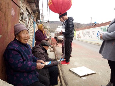 志愿者在宣传灵珠山社工中心的活动及发放彩页
