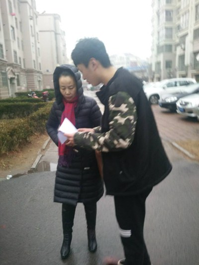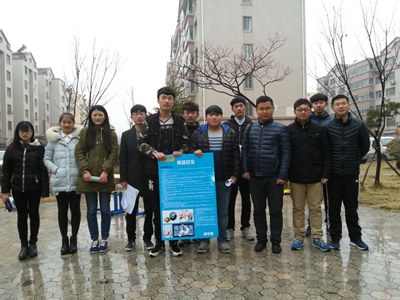 志愿者分发宣传单页志愿者向社区居民宣传志愿者与院团委教师合影