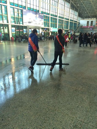 2月18日,软件与服务外包学院在年后派出第二批志愿者服务黄岛汽车总站,帮助乘客搬运行李并清洁车站卫生。