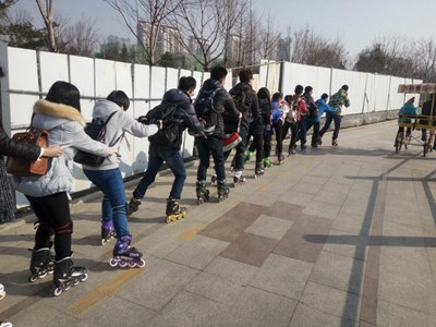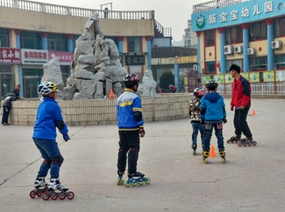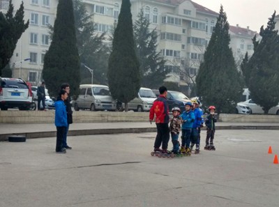 2月15日至19日,海尔学院风影轮滑社的10名社员在黄岛区爱嘉轮滑俱乐部开展轮滑义务教授活动,帮助俱乐部的小学生们学习轮滑。