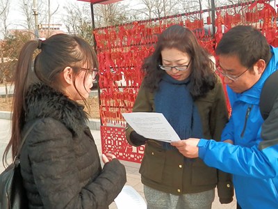 向游客发放文明旅游的宣传单