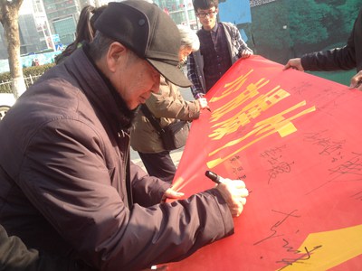市民在横幅上签字