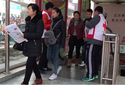 2月5日,软件与服务外包学院志愿服务团队来到香江路红十字会爱心流动献血车处进行志愿服务,宣传献血活动。 在医务人员的指挥下,志愿者迅速进行了分工合作。3人留在献血车里协助工作人员进行咨询、填表工作,剩余的同学则到利群商厦附近和地下商城发放传单进行宣传,向过路人讲解献血的知识。虽然有时会被拒绝,但同学们的热情没有丝毫减少,自始至终用微笑和真诚的态度感染着人们。