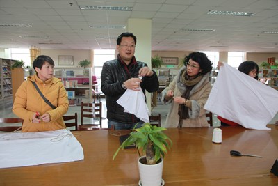 为弘扬中华传统文化,传承手工技艺,近期,青岛技术博物馆特邀请艺术学院服装专家王泽辉博士在我院图书馆期刊阅览室为教职工作蜡染传统手工艺讲座并现场传授扎染技术。