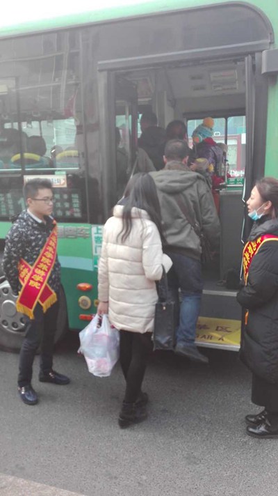 同学们在维持乘车秩序