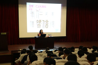 艺术学院党总支书记李志强主持《仁德与礼仪》讲座。讲座中,刘向红讲授向同学们讲授了大成圣至先师孔子的主要思想,并与大家就其影响展开了深入探讨,随后从“仁德”转换到“礼仪”,通过学习古人的智慧,教大家如何做一个有仁德、讲礼仪、受欢迎的人。同学们认真听讲,并不时报以热烈的掌声。艺术学院、海尔学院200余名同学聆听了本次讲座。