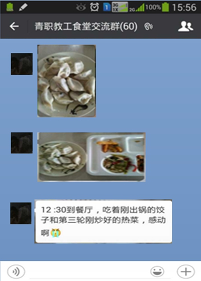 五是师生互动信息化。为更好地收集和听取广大师生对食堂的意见和建议,真正让师生掌握食堂服务评价的“话语权”,在继续坚持“大学生权益委员会每月评价、议价活动”和“教工每月最喜欢吃的饭菜CRP系统预选活动”等传统交流渠道的基础上,在院长覃川的大力倡导下,春季学期开学后后勤服务中心开设了“教工食堂微信交流群”,实现了“每日菜谱公告、个性需求预定、每顿餐后评价、养生知识宣传、创新菜品推荐”等“五位一体”的服务功能,一方面直观便捷地将每日菜谱及价格等信息在全院公布,更重要的是做深、做实与师生的交流平台,赢得了广大教工对食堂的了解、支持和谅解,有效形成了“意见当面提说、需求当面提、问题当面改、服务当面做”的互动氛围,确保师生对食堂的“建议不堵塞、意见不积攒、矛盾不积压、隐患不潜在”。