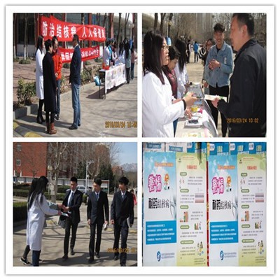 3月24日是第21个世界防治结核病日,为贯彻落实今年“社会共同努力,消除结核危害”的活动主题要求,3月24日上午,学院医务室医护人员及学生志愿者在孔子文化广场北侧组织开展了结核病及常见传染病防治现场宣传活动。