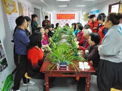 3月26日,微尘志愿者协会的社员们来到了青岛市黄岛区紫金山路社区开展“微行大爱进社区之插花”活动,与社区老人一起插花、聊天。