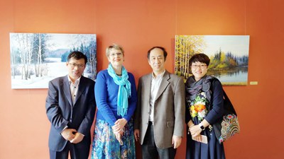 五一佳节之际,俄罗斯太平洋国立大学艺术学院院长、我院客座教授——娜塔莉娅油画展——《远东风景》在青岛嘉木美术馆开幕,院长覃川教授出席了开幕式,艺术学院院长乔璐、副院长刘卫国陪同参加。