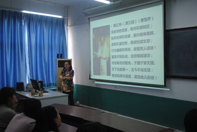 5月5日下午,商学院张玉芳副教授在闻道楼举行“《红楼梦》人物赏析”讲座,100余名学生聆听了讲座。 讲座以《红楼梦》中主人公贾宝玉为中心,用生动具体的小故事讲述了贾宝玉的人生悲剧,并解析了宝玉悲剧的形成原因,鼓励学生在大学期间树立正确的价值观,通过学习、实践掌握职业技能,用自己的努力去创造美好人生。