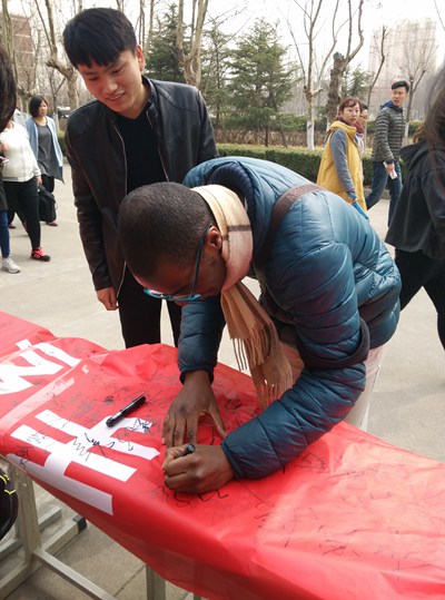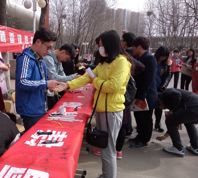 活动中,“传承雷锋精神、争当时代楷模”“学雷锋、树新风”……一句句标语,让在场的每一个人心潮澎湃、热血沸腾。此次活动由商学院团总支发起,商学院学生会、社团联合会承办。来自商学院的志愿者代表宣读了学习雷锋倡议书。“延续雷锋重任,沸腾雷锋热血”等横幅吸引了很多同学并郑重在横幅上签上自己的名字。签名活动结束后,同学们纷纷表示,在以后的学习和生活中要认真弘扬“友爱、奉献、互助、进步”的精神,用实际行动向雷锋同志学习,积极参加志愿服务活动,贡献自己的一份力量。