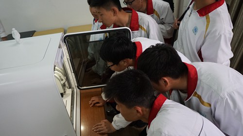 5月12日下午,在学院2016年职业教育活动周期间,海尔学院邀请开发区职业中专“三二连读”机电一体化技术专业2014级和2015级师生,来院参加职业技能交流体验活动。
