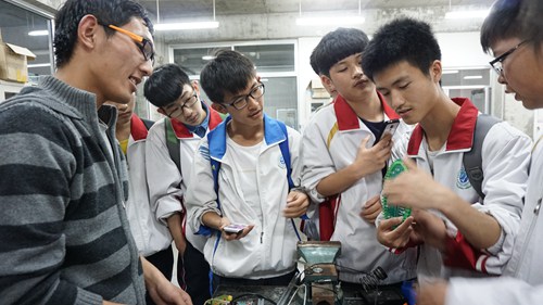 在海尔学院机器人应用与智能制造工作室、智能控制工作室、电子应用技术实训室、机械CAD/CAM应用工作室等专业实训室里,由海尔学院承担创新项目开发的学生为开发区职业中专的同学们讲解项目作品,就他们感兴趣的项目进行了充分的交流探讨。