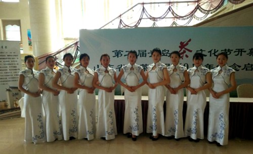 5月20日,“青岛市第二届茶文化节开幕式暨山东省南茶北引60周年纪念启动仪式”在胶南宏城海粤酒店举行,旅游学院淑女学苑社团10名学生作为现场礼仪参加了此次活动。