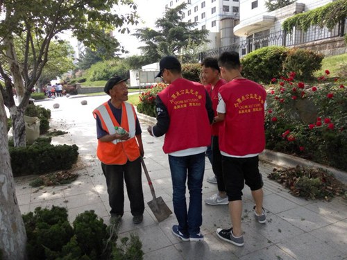 5月21日,青职小雨点公益志愿者协会联合FreeKing漂移板社团走上街头,开展“为环卫工人送清凉”活动,对任劳任怨,持续奋战的环卫工人送上一份关爱。