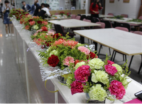 淑女学苑社团的插花培训将进行4次,以后同学们还将学习中式插花、茶艺插花及创意插花。