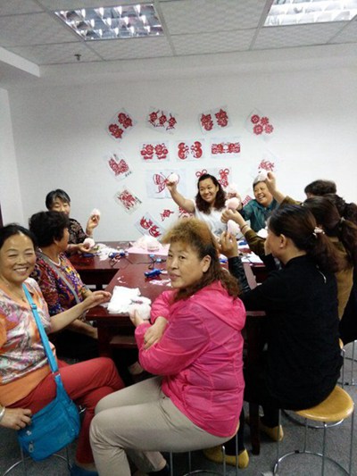 5月26日下午,微尘志愿者协会的志愿者们来到紫金山路社区,教社区的阿姨们手工制作纱布花。