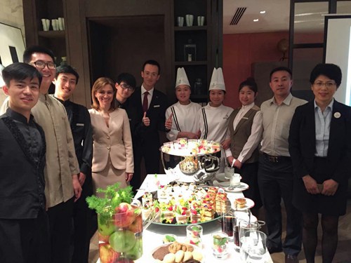 华尔道夫酒店是今年酒店管理专业新增的校外教学基地,酒店为实习生举行了隆重的欢迎仪式,酒店运营总监、人力资源总监、我院带队老师及4名实习生参加了欢迎会。4名实习生分别获取酒店酒吧、餐饮、客房等实习岗位。