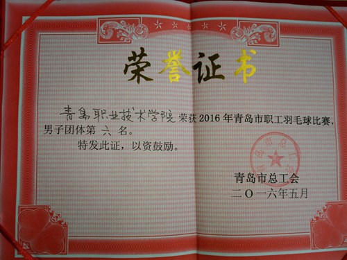 在刚刚结束的2016年青岛市职工羽毛球比赛中,我院教工羽毛球男队获得团体比赛第六名。