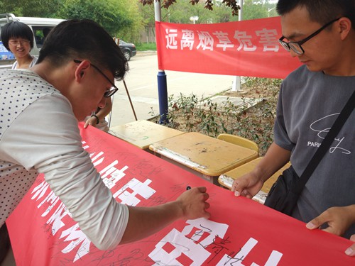 海尔学院2015级各班召开了“拒绝烟草,共创无烟校园”主题班会,讲解国家关于全面禁烟的相关规定,宣传烟草危害,并签下禁烟保证书,号召全体同学营造一个无烟、清洁、健康的学习和生活环境。活动中,同学们纷纷在“远离烟草,崇尚健康,爱护环境,从我做起”的横幅上签字,表达自己对禁烟活动的支持,并以宣传海报、微信平台为载体,共同开展“世界无烟日”的宣传活动。