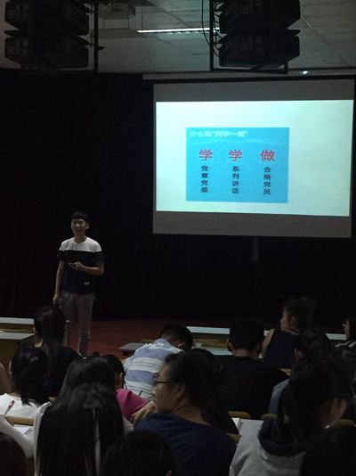 6月6日晚,旅游学院党总支在闻道楼继续举办“两学一做”党课,旅游学院第48期入党积极分子、2015级各班班干部、学生会骨干及所有学生党员共200余人参加了党课,旅游学院党总支书记李明杰为学生上党课,此次党课的目的主要是了解“两学一做”学习教育的“两学”效果,社会主义核心价值观、保密知识、遵纪守法等内容的学习。