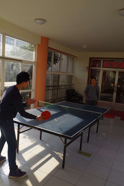 当日上午9时,志愿者准时来到敬老院门口,在敬老院工作人员的帮助下对敬老院的庭院、走廊以及老人的房间进行了清洁,志愿者还与老人们交流,陪老人们一起打乒乓球,练太极拳,进行体育锻炼。