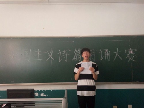 朗诵内容以弘扬爱国主义精神、朗诵经典诗篇为主。比赛共分为闪亮登场、激情朗诵、即兴评述三个环节,展现选手的口才、表演和应变能力。经过激烈的比拼,最终来自软件技术件15级三班的肖培余,凭借标准的发音、幽默诙谐的风格和激情的朗诵,获得一等奖。