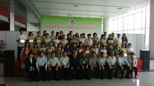 6月12日下午,青岛市茶叶协会与青岛国展商务展览有限公司联合在青岛国际会展中心举办“百桌茶艺表演”,岛城顶级茶艺大师云集于此,同台献艺,为近400名市民代表献上了精彩的茶艺表演。活动中,旅游学院院长齐洪利、副院长王媛媛受邀作为品茗者参与品鉴。旅游学院茶艺教师辛颖秀、张晶晶在前期茶艺师选拔中以优雅的气质、良好的心态展现熟练的泡茶技能入围泡茶师团,两位老师作为茶艺师在此次活动中表演茶艺并荣获“百桌茶艺表演获奖茶艺师”称号。12日旅游学院刘项老师带队,由茶艺队、茶艺社、淑女学院和国家旅游局万名英才计划我院海青茶文化推广项目团队组成的庞大志愿者团队共计40人前往开幕式现场进行志愿服务活动,受到了大会主办方的好评。