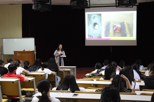 旅游学院张晶晶老师以“亲子关系”为主题,通过和大家分享绘本《爱心树》、叙利亚、利比亚难民带着孩子偷渡的照片、诗歌《儿子眼中的父亲》、“你给妈妈打几分”的视频,让同学们了解父母与子女的互相期许。张晶晶还通过解析“孝”字和列举“愚孝”的例子,引导大家思考:如何与父母更好的相处?新时代的亲子关系应该是怎样的?张晶晶幽默风趣、感性温软的语言把《弟子规》与现今生活融合在一起,使同学懂得如何以正确的方式爱父母、孝敬父母。