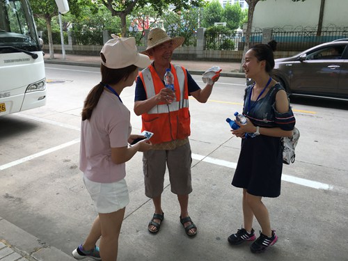 同学们分成两组,分别沿香江路和钱塘江路开展活动。每遇到在烈日下忙碌的环卫工人,同学们便前去问候并送上矿泉水和精心准备的爱心手套。同学们表示,环卫工人一年365天不管狂风骤雨还是严寒酷暑,从不缺岗,他们默默无闻的付出为市民带来良好的生活环境,作为大学生,不能只享受他们的劳动成果,更要懂得感恩,给予回报。环卫工人对志愿者们表示感谢:“你们送的不仅是清凉,更温暖人心。”