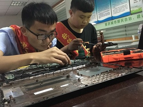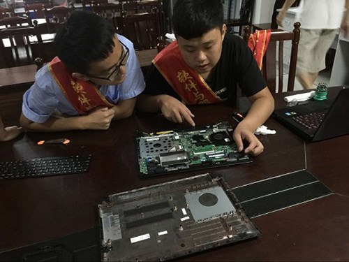 志愿者正在维修电脑