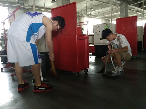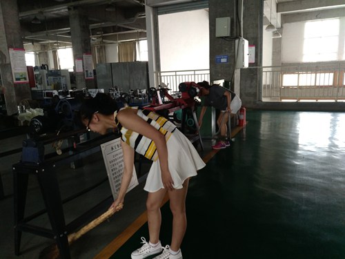 在实训基地教师畅建辉的指导带领下,社员进行明确的分工安排,分别对实训基地二楼的数控机床、CA6140A机床清理灰尘,对走廊等区域进行清洁打扫,尤其对机床下的卫生死角进行认真地清扫。整个劳动过程中,社团成员不怕脏不怕累,积极地参与其中,人人动手,团结合作,积极发扬了团结、友爱、奉献的志愿服务精神。