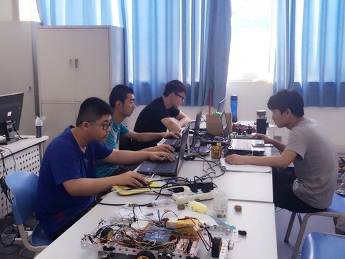 实验室里紧张备赛的学生