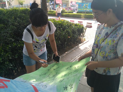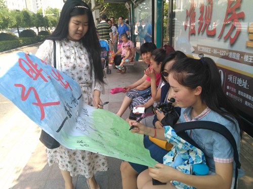 近日,商学院小红帽志愿者在香江路附近展开以“明文乘车,绿色出行”为主题的校园行宣传活动,以海报宣传、与行人合影承诺为形式,分小组展开宣传活动。