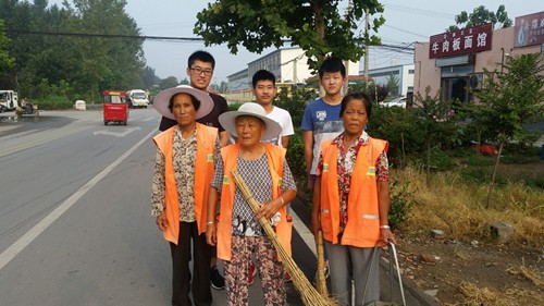 志愿者和环卫工人合影