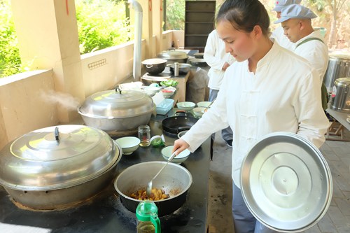 在每天的做饭体验中,队长每次都会带领大对菜单进行讨论,然后大家按照要求分工协作,洗菜、切菜、炒菜,配合得十分默契。在大家的共同努力下,做饭从陌生到熟练,味道也变得更美味,并得到团队老师们的一致好评。除了做菜,团队成员也慢慢学会了包饺子,对于如何包好水饺不露馅或是煮水饺时间的掌握,大家已经变的不再陌生,在做饭中深刻体验到了“自己动手,丰衣足食”的幸福感。每天下午,大家要抡起锄头、铁锹,对菜园进行松土和除草。虽然延安的天气酷暑难耐,但大家还是干得很起劲。劳动间歇,菜园负责人向队员们讲述了延安时期军民大生产的故事,大家不由地被当时军民热火朝天的劳动场面所感染。