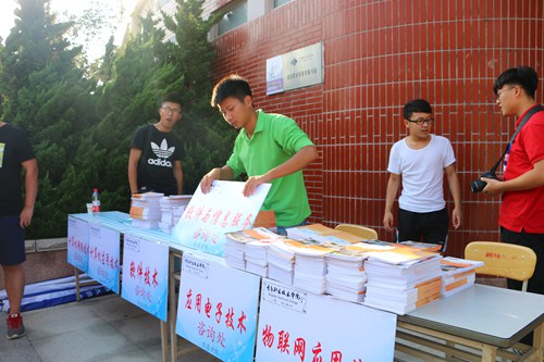 为使新生顺利报到,信息学院在各迎新接站点安排接站服务并在学校大门口及报名点设立了信息学院引导处、学生家长饮水休息处,确保了迎新工作的顺利开展。